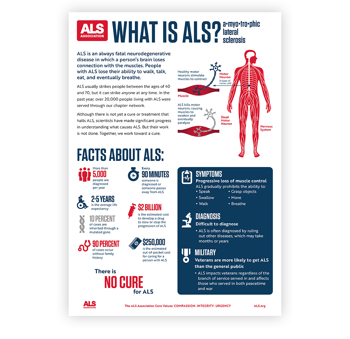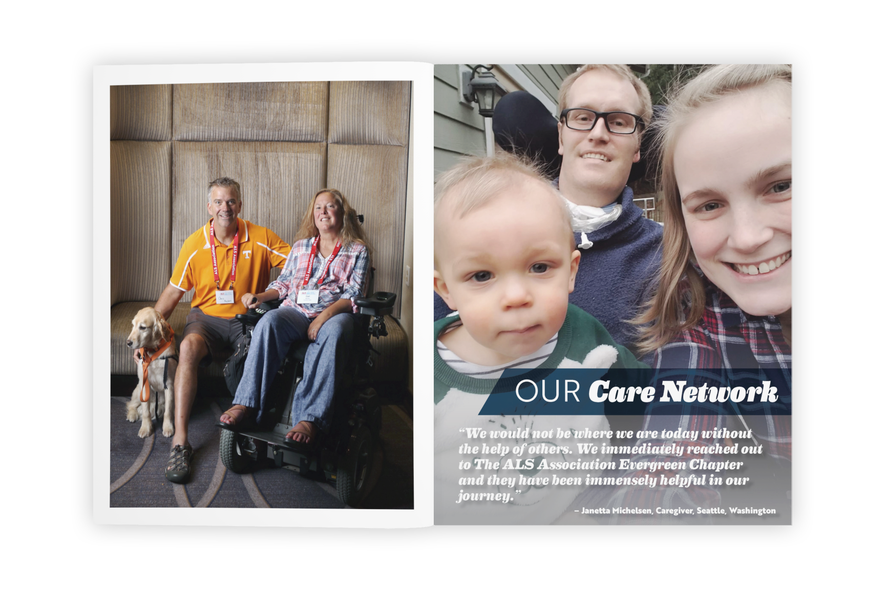 Infographics about ALS and its symptoms, research for a cure, and information on caregivers for people living with ALS. Designed in Adobe Illustrator and InDesign.